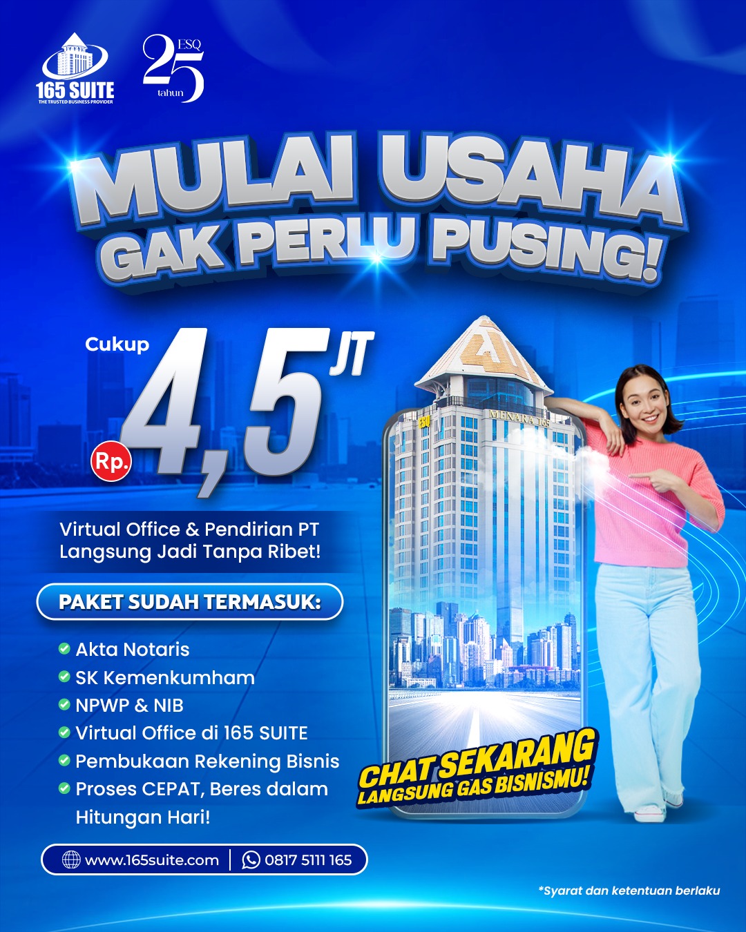 Hubungi 165 SUITE sekarang dan dapatkan PENAWARAN TERBAIK yang kami punya !
